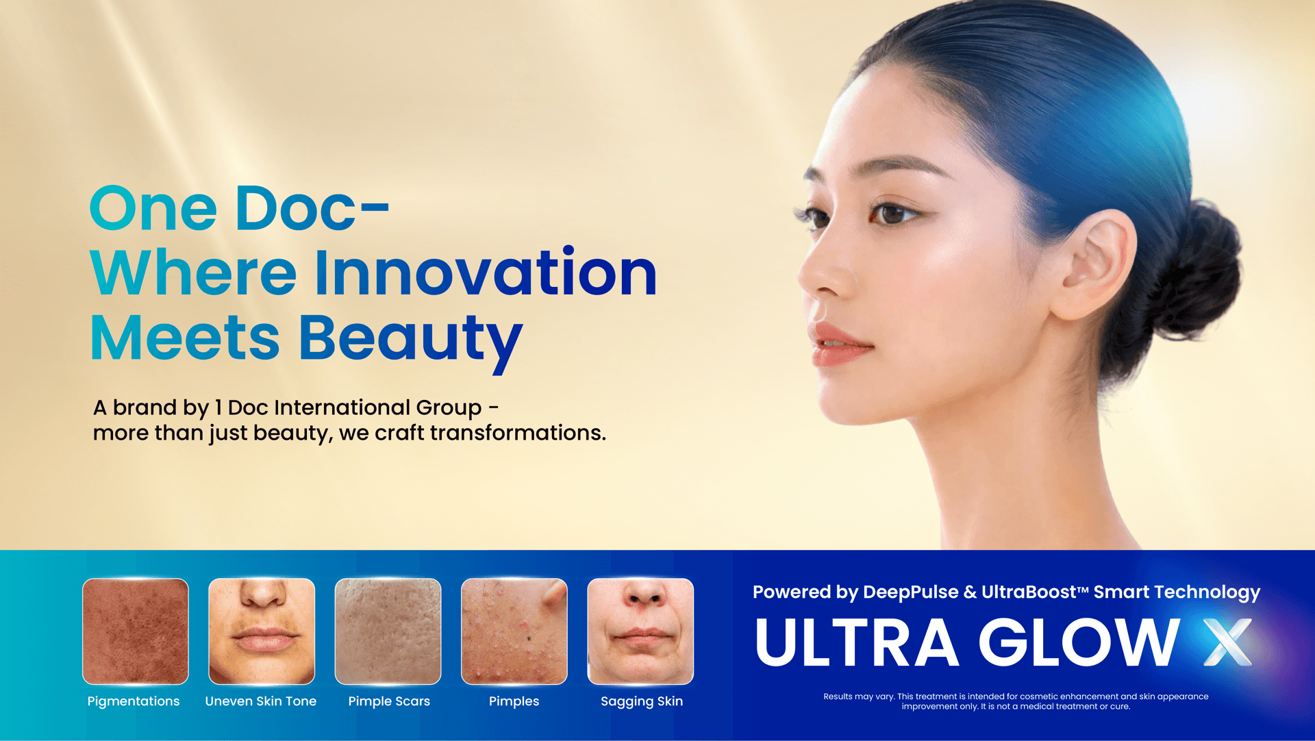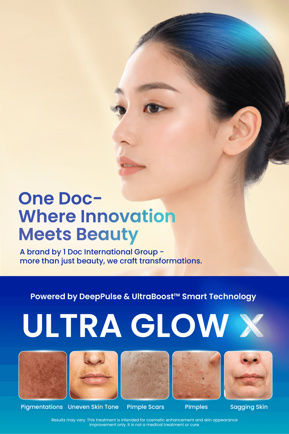 Ultra Glow X is One Doc’s signature skincare treatment designed to restore your skin’s natural radiance and glow. Combining advanced Korean Deep Pulse & UltraBoost Technology with specialised boosting formulas tailored for delicate Asian skin.